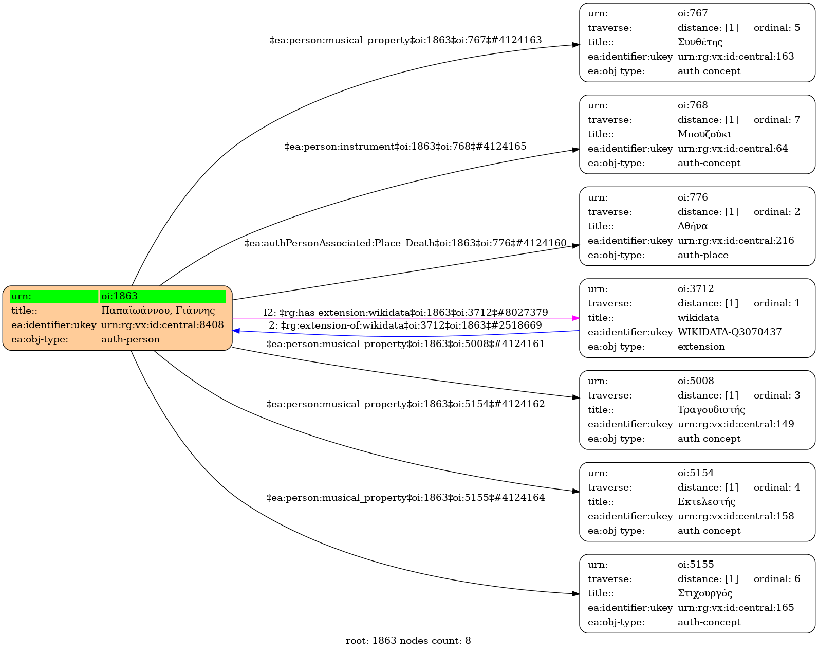 Internal display of the 1863 entity interconnections (Node labels correspond to identifiers)