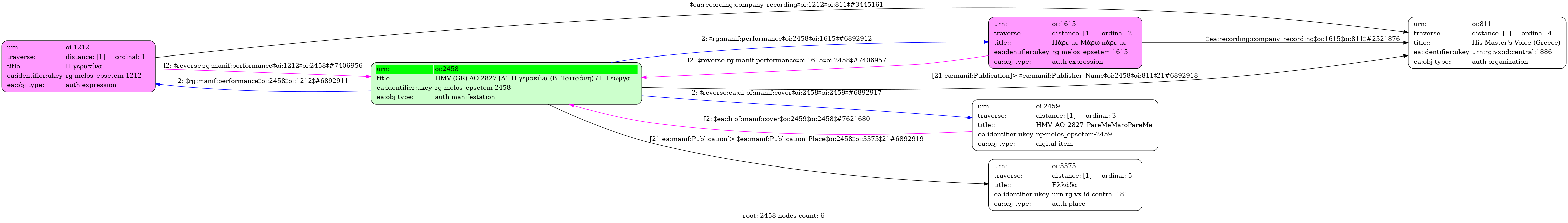 HMV (GR) AO 2827 [Α': Η γερακίνα (Β. Τσιτσάνη) / Ι. Γεωργακοπούλου, Β. Τσιτσάνης, Πρ. Τσαουσάκης] - [Β': Πάρε με Μάρω πάρε με (Β. Τσιτσάνη) / Ι. Γεωργακοπούλου, Β. Τσιτσάνης] - Identifier: 2458