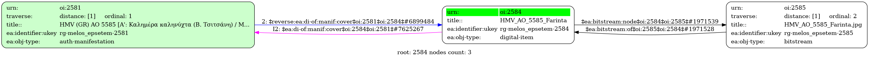 Ψηφιοποιημένη Φωτογραφία: HMV (GR) AO 5585 [Α': Καλημέρα καληνύχτα (Β. Τσιτσάνη) / Μ. Αγγελόπουλος] - [Β': Φαρίντα (Β. Τσιτσάνη) / Μ. Αγγελόπουλος] - Identifier: 2584