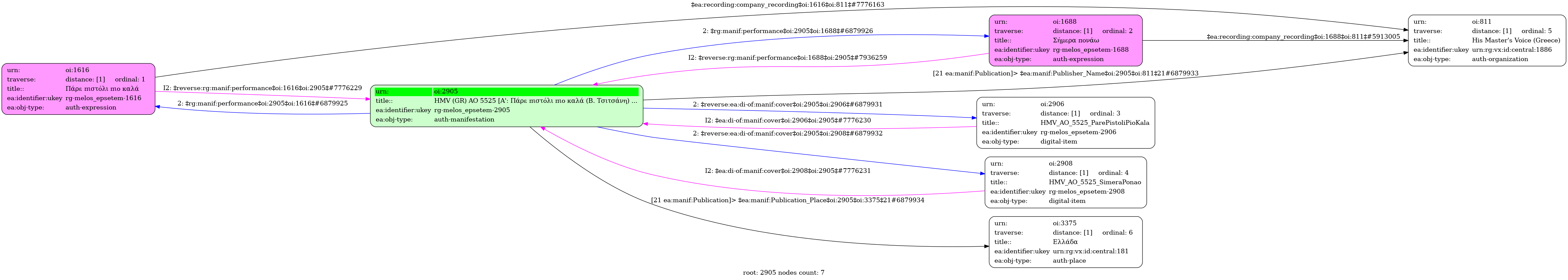 HMV (GR) AO 5525 [Α': Πάρε πιστόλι πιο καλά (Β. Τσιτσάνη) / Γ. Λύδια] - [Β': Σήμερα πονάω (Β. Τσιτσάνη) / Στ. Καμπάνης] - Identifier: 2905