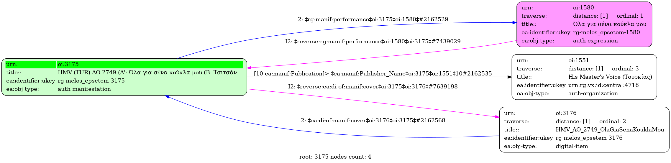 HMV (TUR) AO 2749 (A': Όλα για σένα κούκλα μου (Β. Τσιτσάνη) / Στρ. Παγιουμτζής, Β. Τσιτσάνης] - [Β': Σαν της ορφάνιας τον καημό (Στρ. Παγιουμτζή) / Στρ. Παγιουμτζής] - Identifier: 3175