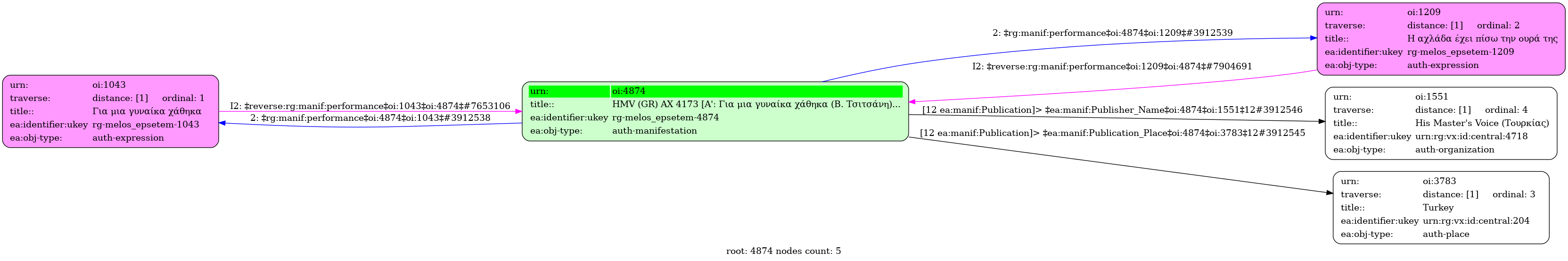 HMV (GR) AX 4173 [Α': Για μια γυναίκα χάθηκα (Β. Τσιτσάνη) / Πρ. Τσαουσάκης, Μ. Νίνου] - [Β': Η αχλάδα έχει πίσω την ουρά της (Β. Τσιτσάνη) / Πρ. Τσαουσάκης, Β. Τσιτσάνης, Ρ. Στάμου] - Identifier: 4874