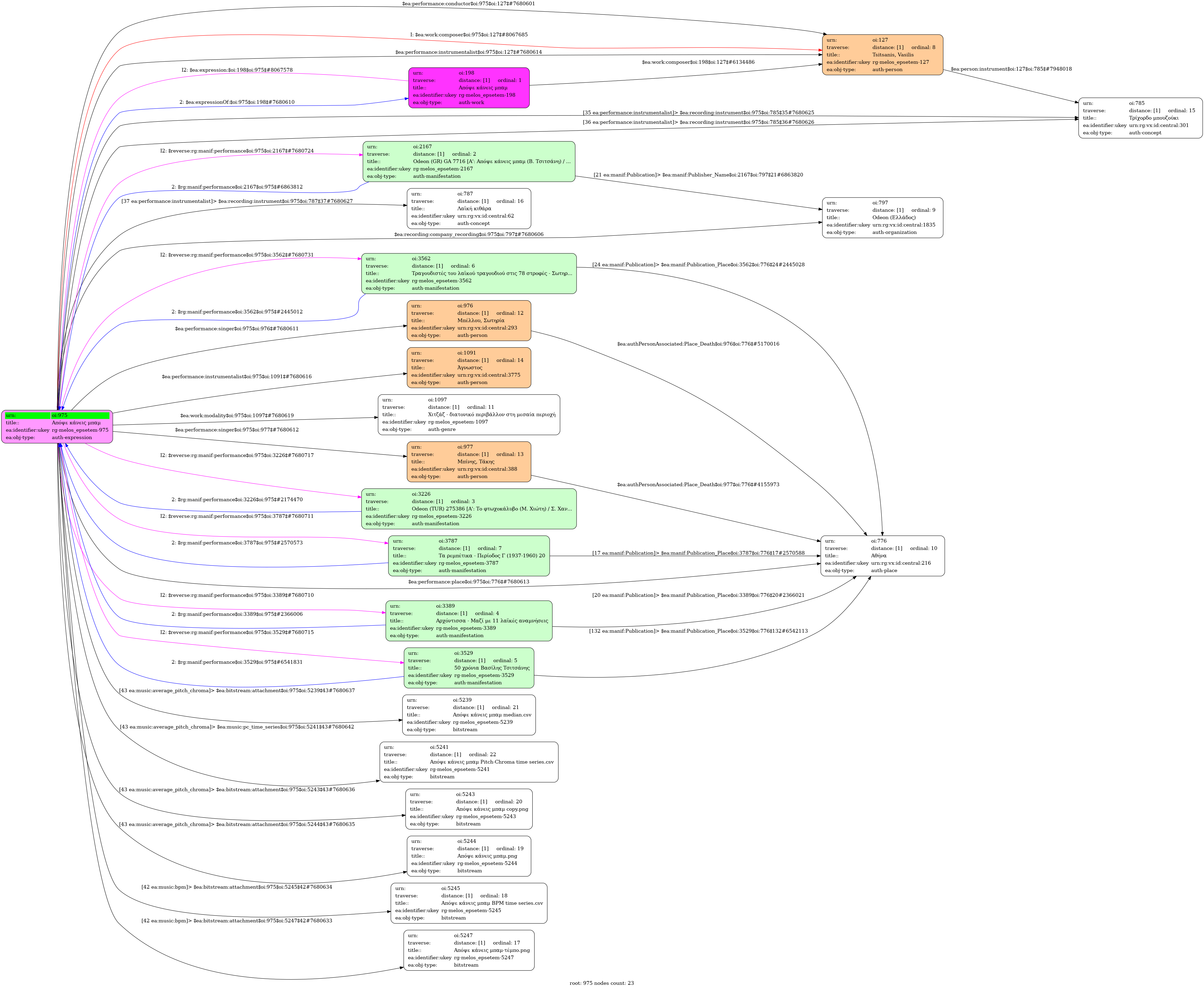 - Το ραβδόγραμμα δείχνει τις χρονο-μεσοσταθμικές τιμές του chromagram, κανονικοποιημένες στη μονάδα. Τα αρχεία CSV περιέχουν τα αριθμητικά δεδομένα που χρησιμοποιήθηκαν για τη δημιουργία του ραβδογράμματος και του chromagram. Οι κορυφές (μέγιστα) του chromagram και των ραβδογραμμάτων αντιστοιχούν στις πιο έντονες νότες που παίζονται ή τραγουδιούνται. Στις περισσότερες περιπτώσεις, η μέγιστη κορυφή στο ραβδόγραμμα αντιστοιχεί στην τονική του πιο κυρίαρχου δρόμου. Σε άλλες περιπτώσεις, μπορεί επίσης να αντιστοιχεί στην πέμπτη και, λιγότερο συχνά, στην τρίτη του δρόμου (ή δρόμων). Σημειώστε επίσης ότι, λόγω της εναρμόνισης των δρόμων, το chromagram και το ραβδόγραμμα μπορεί να παρουσιάζουν κορυφές (τοπικά μέγιστα) στη δεύτερη και (φυσική) έβδομη βαθμίδα τους.